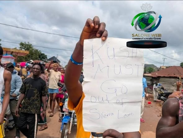 The post highlights a significant and positive development in Makeni City — a unified community campaign against drug abuse, particularly targeting the widespread use of KUSH, a dangerous synthetic drug affecting many young people in Sierra Leone.